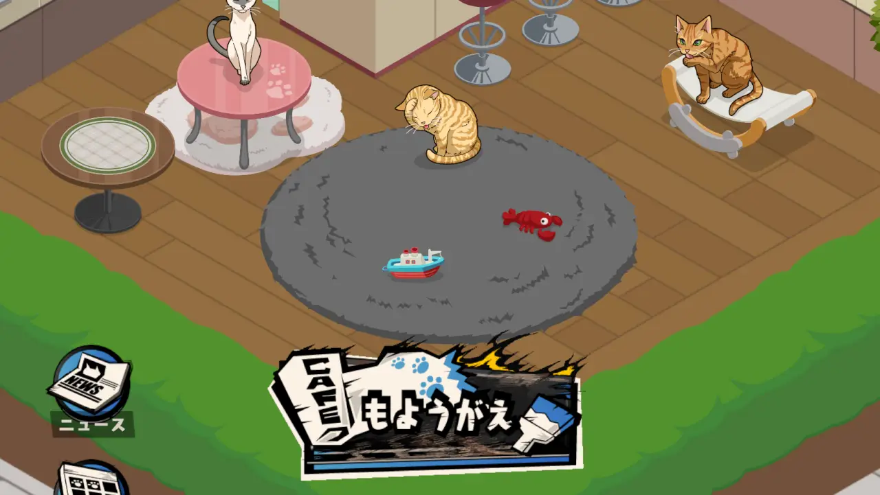 もう1点としては、模様替えの猫ちゃんに動きがありません。猫なんだから箱庭で自由に動いて欲しい…!