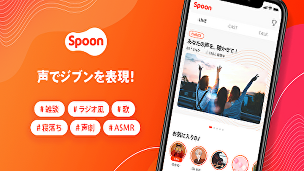 『Spoon(スプーン)』は、音声メインの“ラジオ型”ライブ配信アプリです。